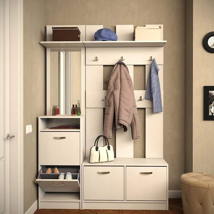 Обычно в прихожей устанавливают шкаф либо шкаф-купе и тумбу для обуви, иногда щиты с крючками и зеркало. В миниатюрных помещениях отлично смотрится светлая мебель, визуально увеличивающая пространство. В качестве оптимального варианта лучше использовать классический стиль или минимализм. При выборе мебели для прихожей обязательно обратите внимание на надёжность фурнитуры и креплений, ведь от этого зависит долговечность и внешний вид мебели.